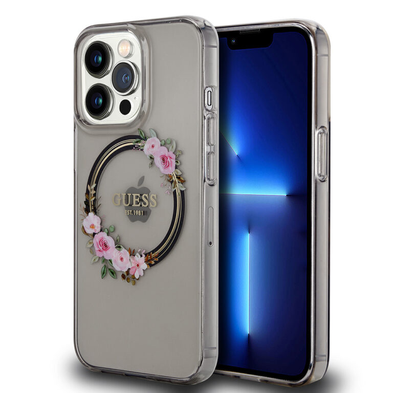Guess iPhone 13 Pro Back cover case – Magsafe IML flowers – Black