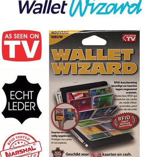 Wallet Wizard 24 Creditcard, Visitekaart En Cashhouder Met RFID Beveiliging Echt Leder – Zwart