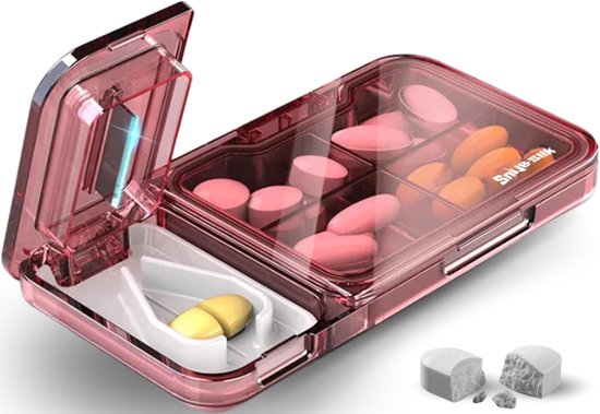 Pillensnijder | Pillenslijter en Pillenhouder van Snij&Slik – Innovatief 2-in-1 Ontwerp en een Slimme Oplossing Door zijn Gebruiksgemak | Veiligheid | Duurzaam en Compact | Formaat van 11,9 x 6,3 x 1,8 cm | Roze