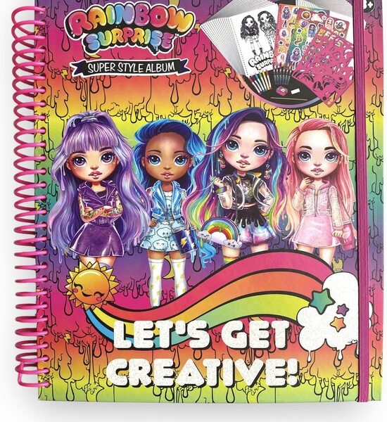 Rainbow Surprise Super Style Album- Met Viltstiften – Krijtjes – Gum – Potlood – Puntenslijper – Sjablonen – Stickers