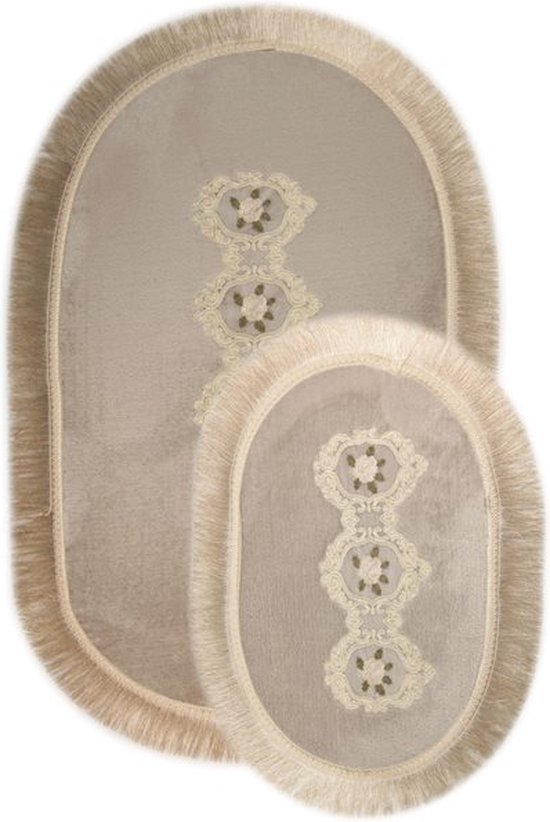 Bonny Home Shems Ovaal Badmat – Antislip Badmat – Kanten Badmat – 2 stuks – Klein en Groot – Grijs
