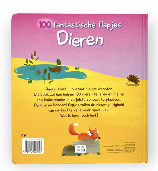 Kleuters leren constant nieuwe woorden. Dit boek zal hen helpen 100 dieren te leren en die op een leuke manier in de juiste context te plaatsen. De tips en 100 flapjes zullen de nieuwsgierigheid van uw kind telkens weer opwekken. Wat is leren toch leuk!