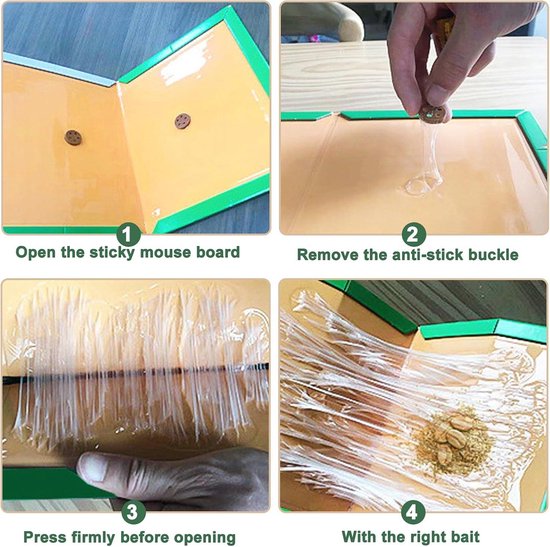 De lijmvallen voegen de pindageur toe, waar ongedierte van houdt. De niet-giftige, geurloze en sterke lijm kan kakkerlakken aantrekken en stevig opvangen zodra ze binnenkomen. De kleefcoating en sterke hechting zorgen ervoor dat kakkerlakken en insecten zoals mieren, muggen en motten gedurende lange periodes niet kunnen ontsnappen. Je kunt de lijmvallen plat, L-vormig, U-vormig of gatvormig plaatsen voor maximale effectiviteit.