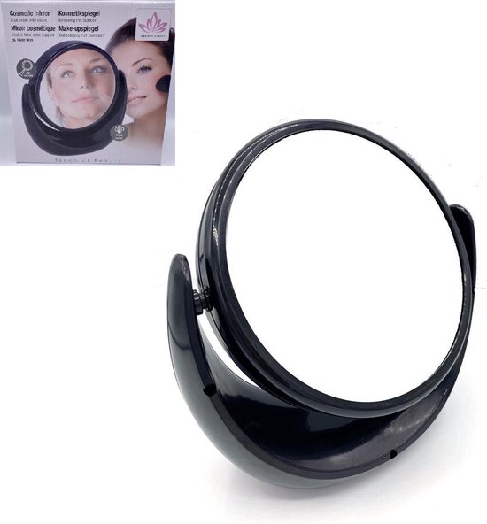 3x Vergrotende Make-up Spiegel Zwart – 18x8x19CM – Dubbelzijdig Met Standaard –