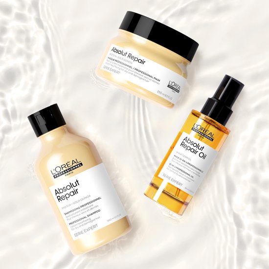 Het Absolute Repair Masker is speciaal ontwikkeld voor beschadigd haar Het herstellende masker is verrijkt met o a Gouden Quinoa en ProteA nen Deze ingrediA