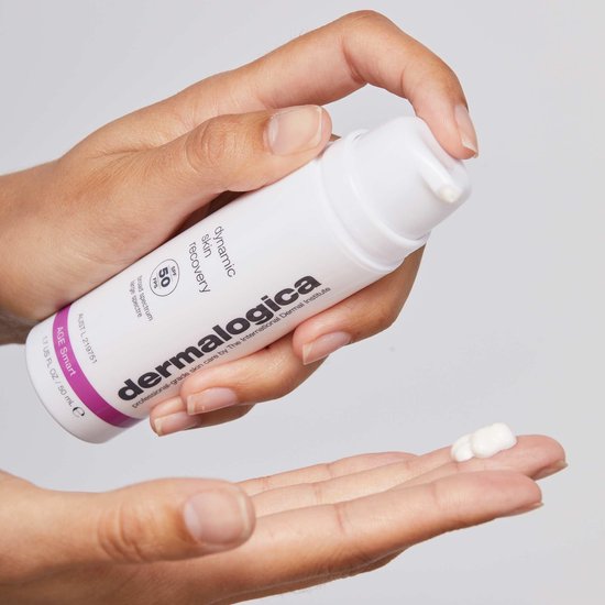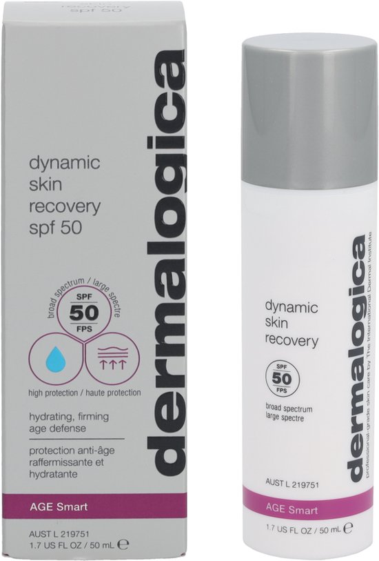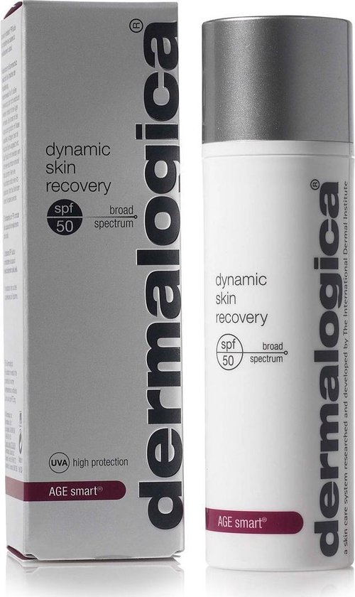 Dermalogica Age Smart Dynamic Skin Recovery SPF50 Deze moisturizer zorgt voor intensieve hydratatie en wapent de huid tegen in en externe invloeden die een rol spelen bij huidveroudering Het product bevat breedspectrum zonbescherming spf50 voor optimale bescherming tegen huidverouderende UV stralen Een gepatenteerde peptide Soja en Glucosamine stimuleren de aanmaak van collageen en verbeteren de weerstand van de huid Gebruik Breng een ruime hoeveelheid aan over het gezicht en de hals na de reiniging bij voorkeur 30 minuten voor blootstelling aan de zon