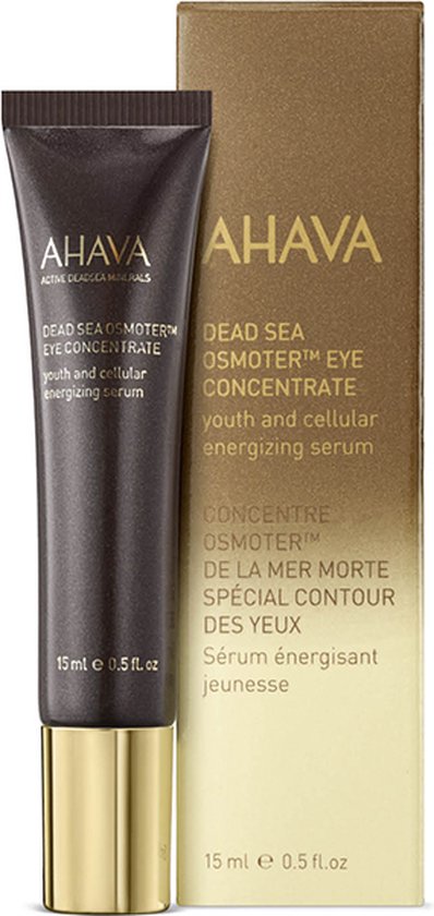 Ahava Dead Sea Osmoter Eye Concentrate Yought and Cellular Energizing Serum Een formule die het verschijnsel van donkere cirkels en gezwollen ogen vermindert voor een uitgeruste en frisse uitstraling Versterkt met een drievoudige concentratie Osmoter en olijvenextract om het huidvocht te herstellen de cellulaire energiegehaltes van de huid te stimuleren en de werking van het natuurlijke ontgiftingssysteem te verbeteren Gebruik s Ochtends en s avonds rondom de ogen aanbrengen Voor een optimaal resultaat de Ahava Oogcreme hierna aanbrengen