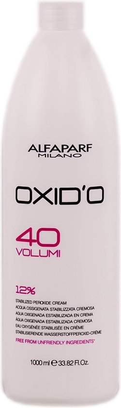 Gestabiliseerde Peroxide Crème verrijkt met waxen en conditioners om haar te beschermen tijdens de haarkleurings proces. Werking van Alfaparf Oxydant Creme: * 10V (3%): Donkerder – Toon op Toon – Grijs dekking * 20V (6%): Grijs dekking – 1 tint lichter * 30V (9%): Grijs dekking – 2 tint lichter * 40V (12%): Grijs dekking – 3 tint lichter Maat: 1000 ml – 33.81 Fl.Oz.