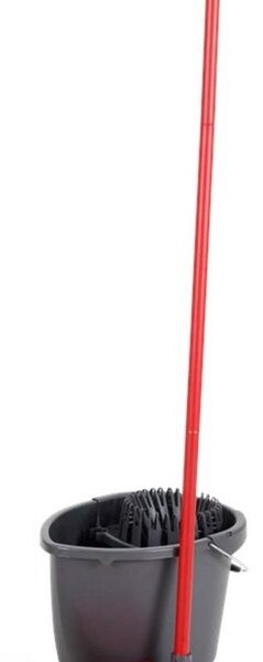 De dweilemmer in deze alpina dweilset beschikt over twee compartimenten die het schone en vieze water van elkaar gescheiden houden. Je vult simpelweg de ene kant van de emmer met schoon water, dompelt de dweil in het schone water en wringt aan de andere kant van de emmer het water gemakkelijk uit de dweil. Zo hoef je nooit meer met je handen aan een vieze dweil te zitten.