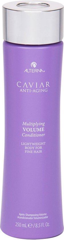 Alterna Caviar Anti Aging Multiplying Volume Care Multiplying Volume Conditioner Deze conditioner is geschkt voor ouder haar dat futloos is en volume mist De condtioner geeft volume zonder het haar te verzwaren broosheid van het haar wordt hersteld Vrij van parabeen en sulfaat Gebruik Breng de conditioner aan op handdoekdroog haar Spoel deze vervolgens uit