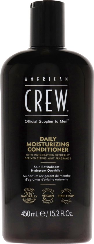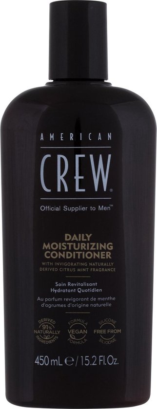 American Crew Daily Conditioner versterkt het haar en de hoofdhuid en reinigt het haar grondig. Deze grondige reiniging stimuleert de hoofdhuid en heeft als voordeel dat je huid niet vettig wordt. Hierdoor heeft het haar een goede basis om gezond te blijven en tegelijkertijd ook nog vochtig te worden gehouden. Verder heeft deze Conditioner voor dagelijks gebruik vocht gevende bestandsdelen om het haar te verzorgen zonder restanten achter te laten. Dit resulteert in een fris effect op de hoofdhuid.