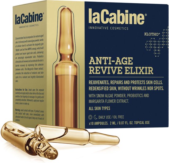 De Ampullen Revive Elixir laCabine (10 x 2 ml) is een kwaliteitsproduct dat is ontworpen voor veeleisende personen die zorg dragen voor hun uitstraling en op zoek zijn naar de beste cosmetica om hun schoonheid extra in de verf te zetten. Als jij een van hen bent, zijn de 100 % originele laCabine producten voor jou gemaakt.