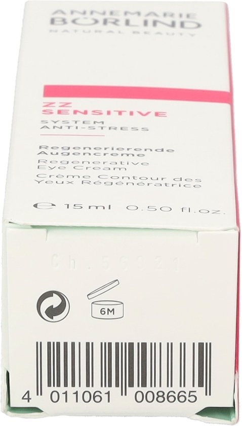 Annemarie Borlind ZZ Sensitive Regenerative Eye Cream Herstellend kalmerend gladmakend Verzachting voor de gevoelige huid rond de ogen vermindert rimpeltjes Gouden orchidee versterkt de huideigen beschermingsfunctie Gebruik s Morgens en s avonds op de gereinigde huid rond de ogen aanbrengen en zacht inmasseren