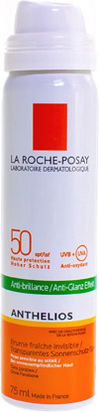 Anti glim Verfrissende formule Hoge zonbescherming Deze gezichtsmist met hoge SPF50 zonbescherming heeft een matte en onzichtbare finish Door de hoge zonbescherming is de huid beschermd tegen schadelijke invloeden van UVA en UVB straling van de zon De frisse nevel is lichtgeparfumeerd De gezichtsmist is speciaal geformuleerd voor de zon gevoelige huid Daarnaast is de Anthelios Matterende Mist waterproof en hypoallergeen Bevat geen parabenen