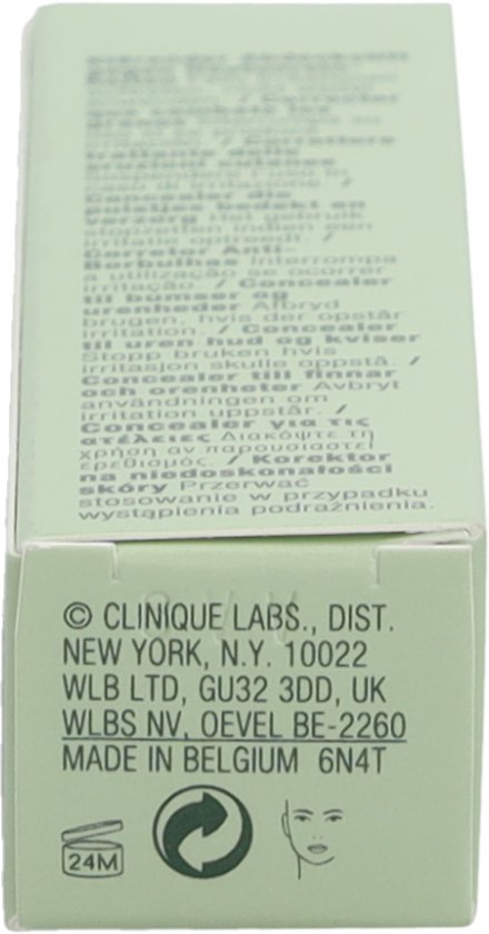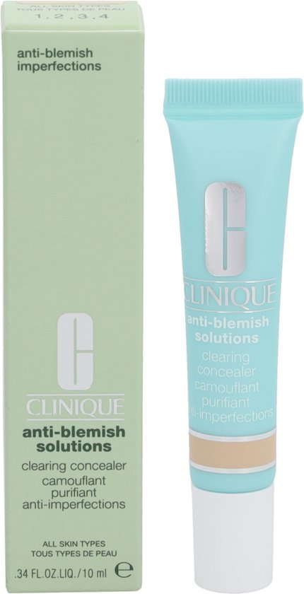 Clinique Anti Blemish Solutions Clearing Concealer Deze geneeskrachtige concealer helpt puistjes te zuiveren en te voorkomen De zachte en kalmerende formule geeft een natuurlijke dekking terwijl de puistjes kunnen genezen De concealer is vetvrij 100 parfumvrij getest op allergieen en bovendien geschikt voor alle huidtypen Kleur Shade 01 Gebruik Dep op het puistje smeer de concealer naar buiten uit en vermijd de oogcontour