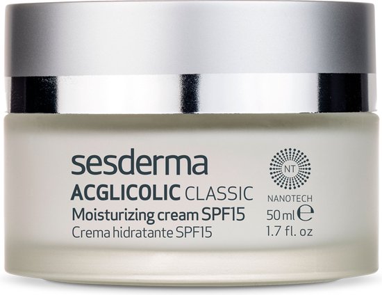 De Anti-Rimpel Dagcrème Acglicolic Sesderma Spf 15 (50 ml) is een kwaliteitsproduct dat is ontworpen voor veeleisende personen die zorg dragen voor hun uitstraling en op zoek zijn naar de beste cosmetica om hun schoonheid extra in de verf te zetten. Als jij een van hen bent, zijn de 100 % originele Sesderma producten voor jou gemaakt.