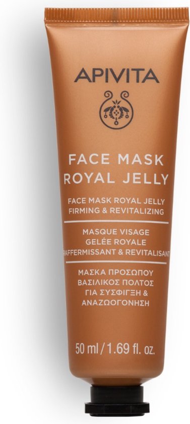 Apivita Face Mask voor Versteviging en Revitalisering (Royal Jelly) Ben jij op zoek naar een natuurlijk huidverjongend gezichtsmasker dat; – de gezichtscontouren een natuurlijk liftend effect geeft? – de huidelasticiteit en souplesse verbetert dankzij hydraterende bouwstenen? – zorgt voor een stralende huidcomplexiteit en dito glans? Daadkrachtige anti-aging in natuurlijk, liftend gezichtsmasker Een verbeterde glans. Een prachtige souplesse en elasticiteit. Een verfijnde aanraking en een subtiel ogende natuurlijke lift van de contouren dankzij de veelvoud aan plantaardige en natuurlijke botanicals en extracten: het natuurlijk liftende gezichtsmasker van Apivita Griekse cosmetica is een weldadig ontspanningsmoment in drukke tijden. De kalmerende en huidherstellende ingrediënten zoals tarweproteïnen, hyaluronzuur en shea butter vernieuwen en verstevigen de huid, terwijl extracten van de Chinese dadelboom en royal jelly de huidcontouren accentueren. Een rijk hydraterend, verzorgend en herstellend gezichtsmasker voor een verbluffende expressie, elegantie en glans. Actieve ingrediënten Apivita Face Mask for Firming & Revitalizing (Royal Jelly) •Royal jelly (koninginnegelei)• helpen aan een verbeterde vochthuishouding van het huidoppervlak, waardoor de huid voller oogt •Chinese dadelboom heeft een natuurlijk liftende werking doordat het de poriën optisch verkleint en de huid laat stralen, wat zorgt voor een jeugdige, frisse uitstraling •Griekse thijmhoning verzacht, verzorgt, hydrateert en heeft kalmerende eigenschappen •Olijfolie• maakt de huid satijnzacht en geeft een fantastische glans en reflectie •Shea butter (karité boter)• verbetert de vochtbalans en huideigen hydratatie, waardoor de vochthuishouding zich beter kan herstellen en voeden •Tarweproteïnen bestaan uit aminozuren, peptiden en proteïnen en zorgen voor een verbeterde hydratatie en hebben een verzorgend, rustgevend effect •Vitamine E wakkert de celcommunicatie aan en verbetert de conditie van het huidoppervlak • Biologisch geteeld Natuurlijke ingrediënten: 97% Dermatologisch getest Vegan: Nee Bevat geen parabenen, SLS/SLES, minerale oliën (paraffine, vaseline, petrolatum), siliconen, propyleenglycol en genetisch gemodificeerde plantextracten. Dierproefvrij (zowel eindproduct als ingrediënten worden niet op dieren getest) 50 ml / 1.85 fl.oz
