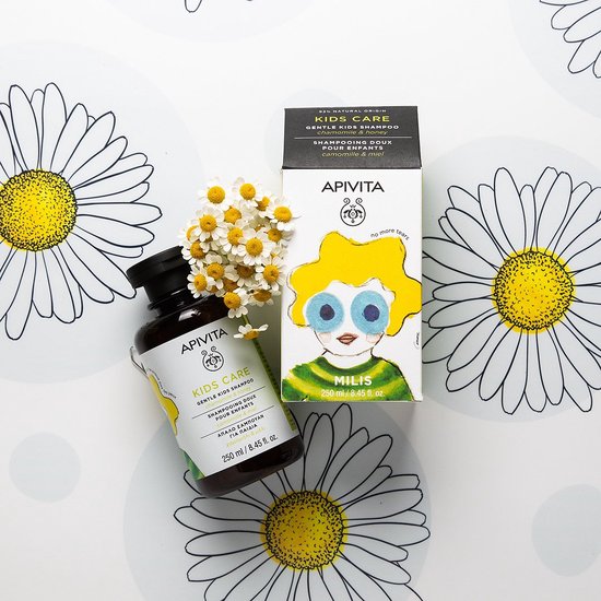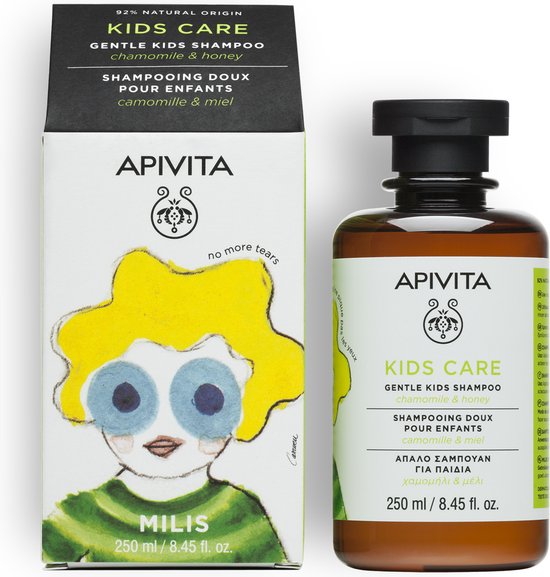 Apivita Mini Bees Gentle Kids Shampoo (3+) Ben jij op zoek naar een natuurlijke shampoo voor kinderen die; – het haar op milde, sulfaat- en siliconenvrije wijze reinigt? – het haar verzacht en voedt? – de hoofdhuid respecteert, hydrateert en kalmeert? Kalmerende shampoo zonder sulfaten en siliconen voor kinderen Het haar van kinderen verdient extra verzorging. Tegen vuil na het spelen, tegen klitten, tegen gespleten punten, na een luizenbehandeling: met de natuurlijke, sulfaat- en siliconenvrije shampoo voor kinderen van Apivita Griekse cosmetica geef jij je kind de allerbeste haarverzorging. Het prikt niet, bevat geen slechte en ongewenste ingrediënten, is ultra-kalmerend en voedt niet alleen de punten en het haar, maar ook de hoofdhuid. Zo krijgt het haar continu de beste verzorging, extra hydratatie en een natuurlijke glans. Mild voor het haar, mild voor de hoofdhuid, prikt niet in de ogen. Actieve ingrediënten Apivita Gentle Kids Shampoo •Kamille• maakt het haar heerlijk zacht en verzorgt de gevoelige hoofdhuid •Honing• herstelt beschadigd en uitgeput haar •Calendula• heeft een kalmerende en herstellende werking •Tarweproteïne maakt het haar steviger, dikker en voller •Panthenol (Provitamine B5) heeft een vochtbindende werking en draagt bij aan de natuurlijke hydratatie •Calendula-infusie in plaats van water, voor een extra verzorgende werking • Biologisch geteeld Natuurlijke ingrediënten: 92% Dermatologisch en ophtalmologisch getest Vegan: Nee Bevat geen microplastics, parabenen, sulfaten, kleurstof, minerale oliën (paraffine, vaseline, petrolatum), siliconen, propyleenglycol en genetisch gemodificeerde plantextracten. Fles is vervaardigd van 50% gerecycled plastic en is 100% recyclebaar. Papieren, FSC-gecertificeerde verpakking is 100% recyclebaar. Dierproefvrij (zowel eindproduct als ingrediënten worden niet op dieren getest) 500 ml