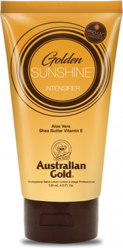 Australian Gold Golden Sunshine is een fantastische dark tanning accelerator waarmee je een snelle, donkere en natuurlijke kleur opbouwt. Deze lotion is verrijkt met o.a. Aloë Vera (voedt en verzorgt de huid), amino acids (herstellen de huid na het zonnen), Shea Butter (voor een zacht aanvoelende huid), vitamine A en E (gaan lijntjes en rimpeltjes tegen) en banana fruit extract dat je huid jong en soepel houdt. De lotion heeft een heerlijke Orange Dream geur, die jou een zomers gevoel zal geven!
