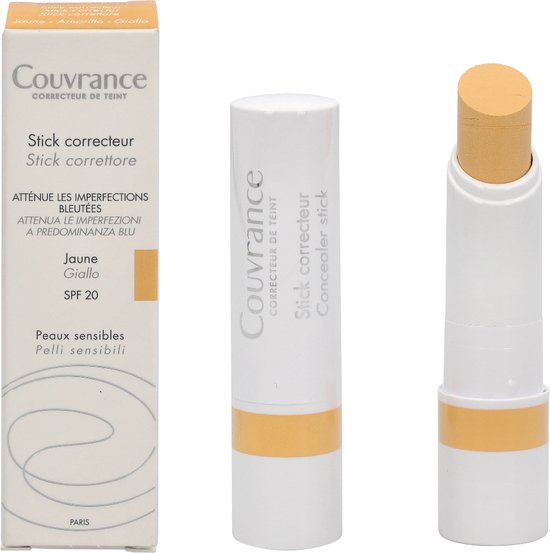 Avène Couvrance Correctiestick Geel maakt het mogelijk blauwachtige onvolmaaktheden te verbergen (traumatische of post-operatieve bloeduitstortingen, blauwe kringen, spataders). Neutraliseert en corrigeert effectief ernstige plaatselijke onzuiverheden.