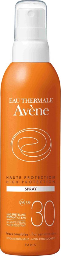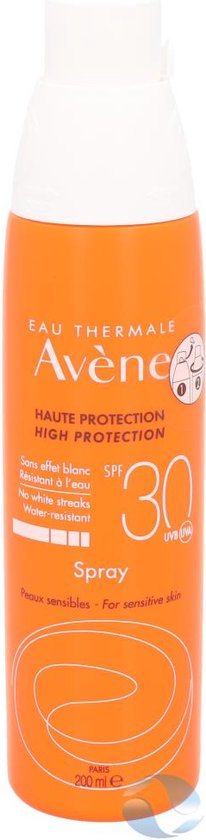 Avene Solaires Spray Haute Protection SPF30 Spray Hoge Bescherming SPF30 Zonnespray met hoge bescherming tegen UVB UVA voor de gevoelige huid Laat de huid ademen Hypo allergeen en zonder parabenen Gebruik Voor het zonnen voldoende sprayen over de huid