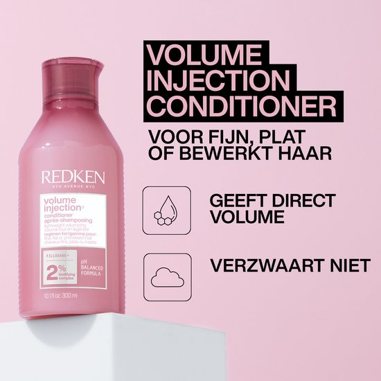 De Volume Injection Conditioner is speciaal ontwikkeld voor fijn haar De conditioner is verrijkt met o a het Bodifying Complex Dit Complex zorgt voor volume vanaf de aanzet Ook helpt de conditioner haarbreuk te voorkomen Het haar zal meer textuur en stevigheid krijgen Gebruik de conditioner in combinatie met de Volume Injection Shampoo voor een optimaal resultaat