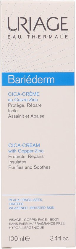 Uriage BariA c derm Cica CrA me Reparatrice Deze herstellende crA me is de ideale behandeling voor de klein dagelijkse problemen van de huid van het hele gezin Geschikt voor de verzwakte geA rriteerde huid en huid met neiging tot atopie van babys kinderen en volwassenen Gebruik CrA mige textuur wordt snel opgenomen Tweemaal per dag aanbrengen op de vooraf gereingde huid