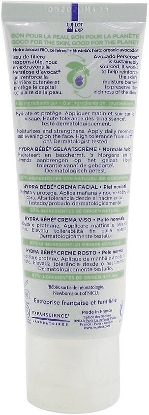 Deze hydra bA c bA c crA me bevat Avocado Perseose wat de huidbarriA re versterkt Ook beschermt dit het cel kapitaal van de huid Het product zorgt voor een onmiddellijke en langdurige hydratatie Het product kan gebruikt worden vanaf de geboorte van het kind Het product bevat 97 natuurlijke ingrediA