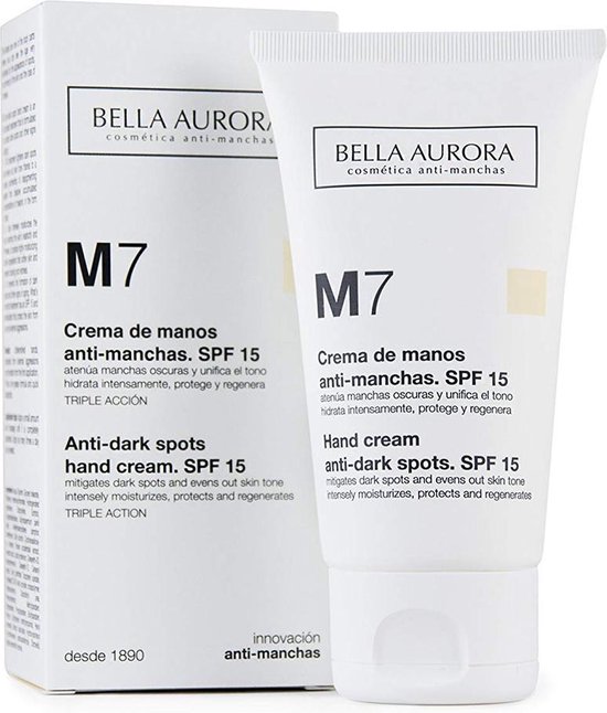 Wilt u graag de beste producten voor schoonheidsbehandelingen in huis hebben van goede kwaliteit en tegen een geweldige prijs? Mis dan zeker de Anti-Donkere Vlekken Handcrème M7 Bella Aurora niet! * Geslacht: Uniseks * Geschikt voor alle huidtypes * Spf: 15 * Hydraterend