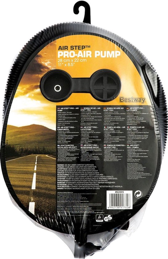 De Bestway voetpomp Air Step is geschikt voor het oppompen van onder andere een zwembad, kajak, luchtbed en opblaas figuren. De voetpomp is voorzien van een duurzame flexibele slang en drie ventielpluggen waardoor deze op bijna ieder opblaasbaar artikel aangesloten kan worden. De luchtpomp heeft een slagvolume van 1,6 liter en er kan eenvoudig gewisseld worden tussen inflatie en deflatie. Met de Bestway Air Step luchtpomp pomp je dus niet alleen makkelijk bijvoorbeeld je zwembad op, maar je haalt de lucht er ook weer makkelijk uit zodat je het zwembad weer netjes op kan bergen.