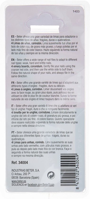 Wilt u graag de beste producten voor schoonheidsbehandelingen in huis hebben van goede kwaliteit en tegen een geweldige prijs? Mis dan zeker de Beter – NAIL FILE corundum 11 cm 4 pz niet!