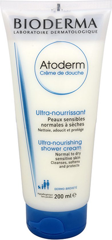 Bioderma Atoderm CrA me Lavante Nettoyante Nutri Protectrice Een voedende en beschermende wascrA me voor de droge tot zeer droge huid Zonder zeep parabenenvrij en hypoallergeen Gebruik Op de natgemaakte huid aanbrengen laten schuimen goed afspoelen en voorzichtig afdrogen Voor gezicht en lichaam