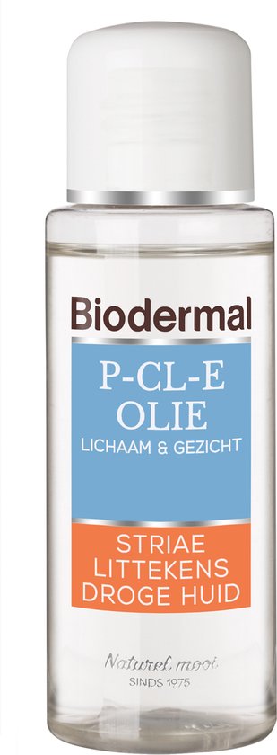 Huidolie van Biodernal! Biodermal P-CL-E olie is voor lichaam en gezicht. Het versoepelt en hydrateert en biedt geweldige huidverzorging bij striae, littekens en droge huid.