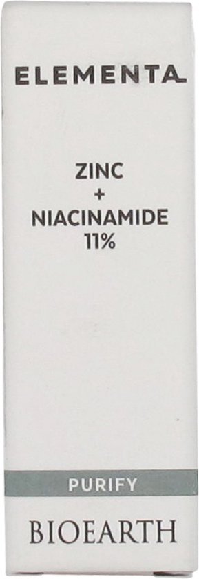 Bioearth Elementa Purify Solution Zink + Niacinamide 11% 15 ml is een intensief zuiverend aanvullend huidverzorgingsproduct met een hydraterende werking. Deze behandeling is een geconcentreerde oplossing van 10% niacinamide en 1% zink in een actieve basis met organisch aloë vera sap en hyaluronzuur, verkregen door natuurlijke fermentatie.Niacinamide, ook bekend als vitamine B3, wordt gewaardeerd om zijn hydraterende, talgregulerende, huidverlichtende en anti-aging eigenschappen. Zink heeft ook een normaliserende werking en wordt gebruikt om acne en puistjes op de jonge huid te behandelen. Dermatologisch getest.Getest op nikkel