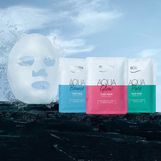 Ontdek het hydraterende gezichtsmasker Aqua Bounce Super Flash Mask van Biotherm, een onmiddelijke boost voor een vochtarme huid, een van de meest voorkomende huidproblemen.