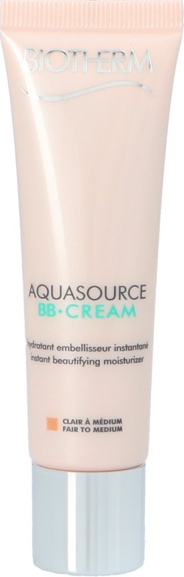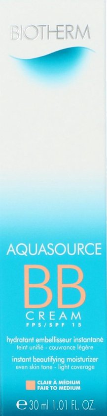 Biotherm Aquasource BB Cream Instant Beautifying Moisturizer Deze BB cream is een licht getinte crA me die een egale teint aan de huid geeft De crA me is uniek door de combinatie van een krachtige hydratatie en een BB effect Daarnaast is de crA me ook voorzien van een SPF 15 De 100 minerale pigmenten zorgen voor een natuurlijke egale teint Kleur Licht tot medium Gebruik Breng de BB cream na de reiniging aan op het gezicht Als je meer dekking wilt breng nog een laagje aan