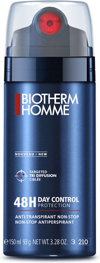 Biotherm Homme 48h Day Control Non Stop Antiperspirant Deze deodorant spray voorkomt nare lichaamsgeuren en geeft je daarom een fijn en zelfverzekerd gevoel De deodorant is verrijkt met kamille extract hierdoor wordt de huid gekalmeerd Daarnaast bevat de deodorant spray micro bolletjes van silicium hierdoor blijft de huid zacht De spray is geschikt voor de gevoelige huid Gebruik Breng het product aan op schone en droge oksels voor het beste resultaat