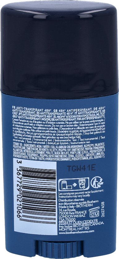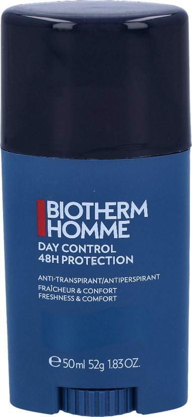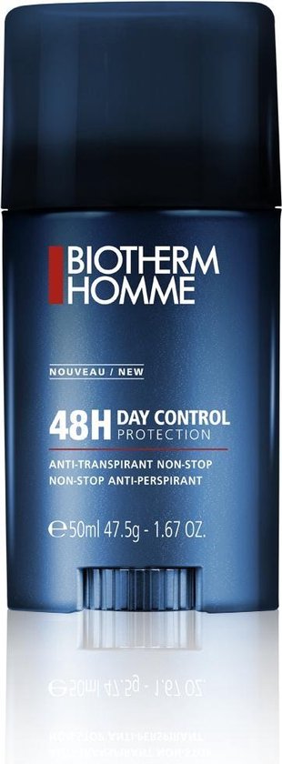 Biotherm Homme 48h Day Control Non Stop Antiperspirant Deze deodorant stick voorkomt nare lichaamsgeuren De deodorant is verrijkt met kamille extract hierdoor wordt de huid gekalmeerd Daarnaast bevat de stick micro bolletjes van silicium hierdoor blijft de huid zacht De stick is geschikt voor de gevoelige huid Gebruik Breng het product aan op schone en droge oksels voor het beste resultaat