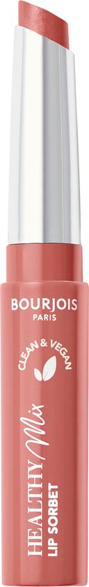 Verwen jezelf met onweerstaanbare sorbettinten die je zullen doen smelten, met Healthy Mix Clean Lip Sorbet van Bourjois. Het is een aanlokkelijk getinte lippenbalsem die je lippen er direct gezond laat uitzien en ze de hele dag hydrateert. De smeltende textuur kan in laagjes op de lippen worden vervaagd voor een heldere en transparante tot schitterende en dekkende finish. De clean formule van deze vegan lippenbalsem bestaat voor 90% uit bestanddelen van natuurlijke oorsprong. Verrijkt met een gezonde mix van vitamine C, E en B om de vochtbarrière van je lippen te herstellen, en met kokosnoot- en zonnebloemolie voor een comfortabel gevoel dat de hele dag aanhoudt. Hydraterende lippenbalsem verkrijgbaar in 6 tinten die je het water in de mond doen lopen, geïnspireerd op fruitsorbet.