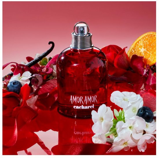 Amor Amor Eau de Toilette 100 ml is het parfum van gepassioneerde jonge vrouwen, een parfum dat de visie op liefde van Cacharel belichaamt. Zijn geur is als een pijl van Cupido die ons hart treft. Het is de passie en de coup de foudre geconcentreerd in een emblematische granaat. Net zoals een liefdesdrank, combineert zijn felrode jus florale en fruitige noten. Roze pompelmoes, bloedsinaasappel en crème-achtige mandarijn worden gecombineerd met jasmijn en frisse abrikoos en maken vervolgens plaats voor bedwelmende vanille.
