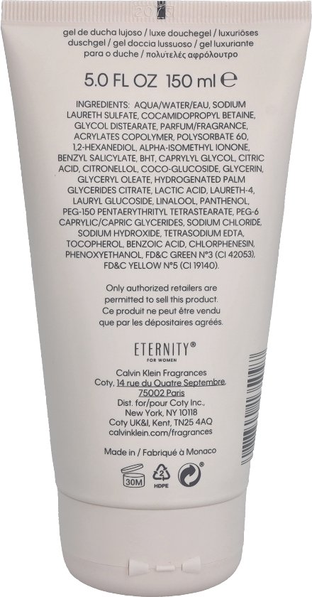 Een heerlijke geurbelevenis. Na het baden laat de douchegel een heerlijke geur achter. Het laat zich ook prima aanvullen door de Eternity bodylotion of parfum. Spaarzaam in gebruik terwijl het toch een rijk schuim geeft.