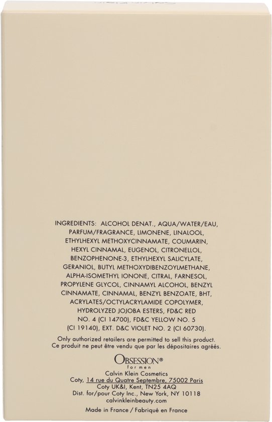 Calvin Klein Obsession for men is een explosie aan fris-kruidige geuren. Deze explosie wordt veroorzaakt door noten van lavendel, koriander, kaneel, jasmijn, patchouli, sandelhout, vanille, vetiver en amber. Calvin Klein obsession is een sensuele en verleidelijke geur die perfect kan worden gedragen tijdens de avonduren.