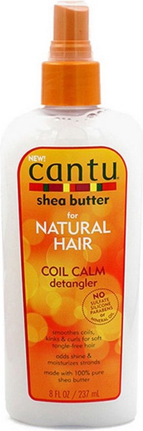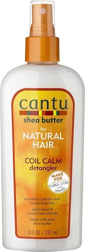 Cantu Natural Hair Coil Calm Detangler verzacht, verzorgt en ontwart het haar, voor een betere styling. *Ideaal voor coils, lock’s en krullend haar. *Geeft glans en hydrateerd. *Gemaakt van 100 % Shea Butter. *Vrij van mineraal olie, sulfaten, parabenen, siliconen, gluten en paraffine.