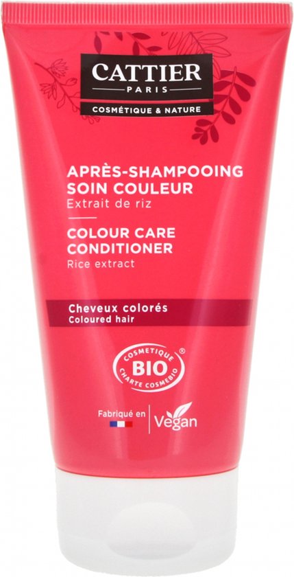 Cattier Organic Colour Care Coloured Hair Conditioner 150 ml is een conditioner die gekleurd haar voedt en de glans verlengt. Rijst extract beschermt, herstelt en versterkt de haarvezel voor een kleur die lang houdt, intense glans en een zijdezacht gevoel. Cupuaçu boter omhult en vergemakkelijkt het ontwarren zonder het haar te verzwaren.De kleur is briljant en stralend, het haar is zacht en gesublimeerd. 98% van alle ingrediënten zijn van natuurlijke oorsprong.15% van alle ingrediënten is van biologische oorsprong. COSMOS ORGANIC gecertificeerd door ECOCERT Greenlife volgens de COSMOS-norm. Veganistisch. Gemaakt in Frankrijk.