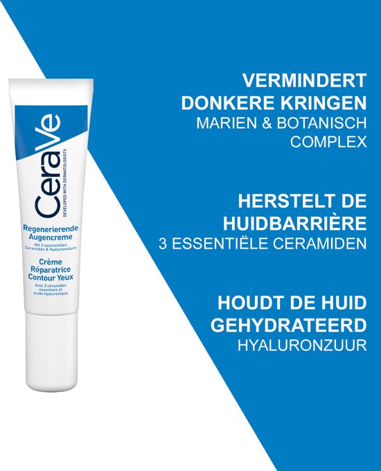 Deze niet vette oogverzorging met lichte crA me textuur verzacht en herstelt de tere huid rond de ogen en vermindert donkere kringen en wallen Het product is oftalmologisch getest en goedgekeurd waardoor het veilig is voor de huid rond de ogen Bevat 3 essentiA