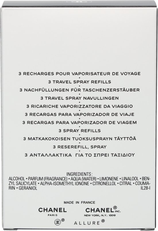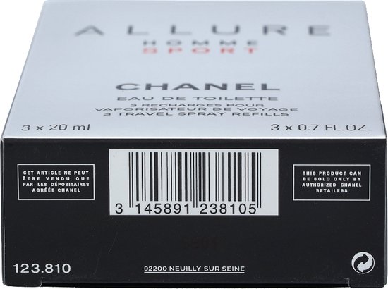 Chanel Allure Homme Sport Giftset 3x Edt Travel Spray Refill 20Ml Twist and Spray 123810 FRANCE carton 1 set x 60 ml