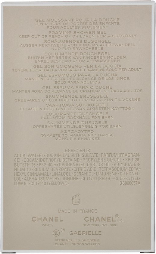 Chanel Gabrielle Shower Gel 120960 FRANCE carton 1 bottle x 200 ml