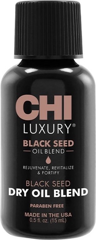 CHI Luxury Black Seed Oil Dry Oil De Black Seed Dry Oil is een voedingsstofrijke behandeling die het haar voedt en herstelt zodat het haar er sterkt vol glad en glanzend uitziet De lichte formule wordt makkelijk geabsorbeerd en maakt het haar glad zonder het te verzwaren Gebruik Breng de olie aan op droog of handdoekdroog haar Stijl het haar zoals gebruikelijk