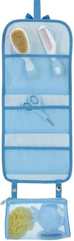 Veel nuttige artikelen voor de dagelijkse verzorging van de baby in een praktische toilettas, die in de badkamer kan worden opgehangen. Met uitneembare binnenzak. Ook ideaal als cadeau.