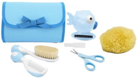 1 Kam 1 borstel 1 nagelschaartje 1 natuurspons, 1 badthermometer in vorm vis, toilettas
